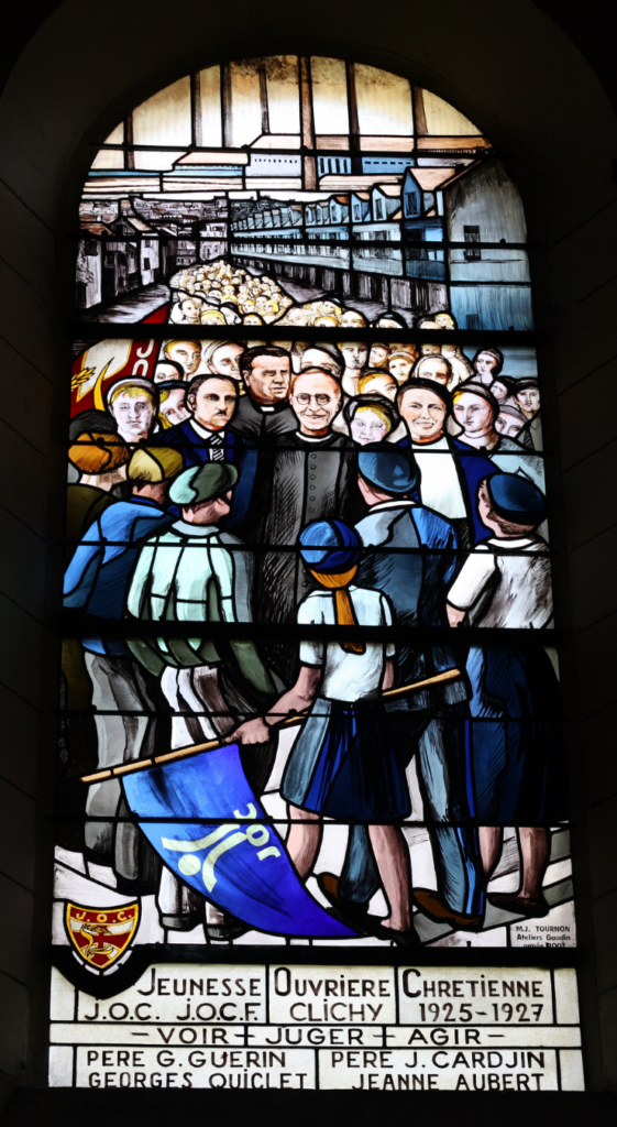 La JOC naît en France à Clichy, autour du Père Guérin avec 4 jeunes travailleurs, un menuisier, un mécanicien, un camionneur et un employé. Ils se retrouvent après le travail, discutent de ce qui fait leur vie… Ils s’interrogent comment leurs situations peuvent changer. Dès janvier 1927 paraît le premier numéro de “La Jeunesse Ouvrière” rédigé par les jeunes travailleurs eux-mêmes.